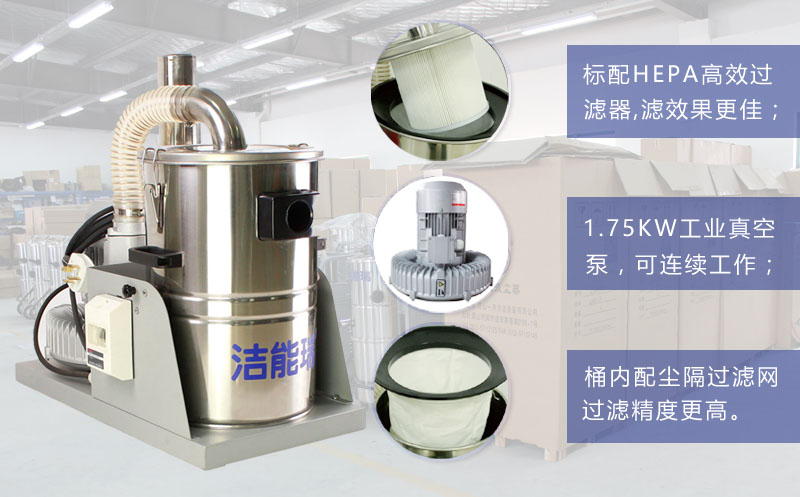 1、30L固定式配套工业吸尘器三相电,1.75KW工业级真空泵,符合 UL&CE等国际认证,坚固耐用并可连续24小时工作;